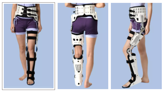 用于固定和控制髋关节的屈曲、伸展、内收、外展等运动的矫形器。