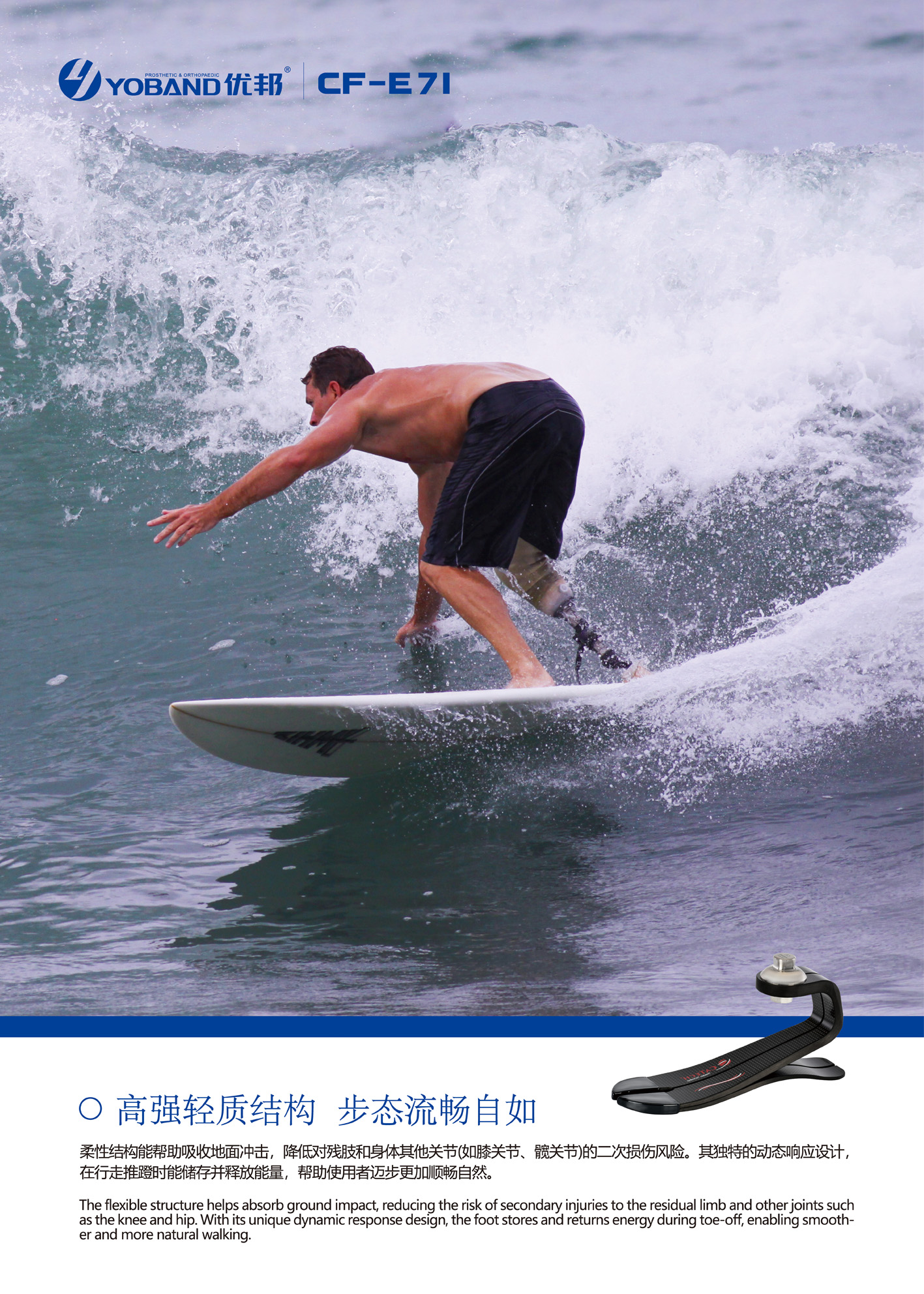 柔性结构能帮助吸收地面冲击,降低对残肢和身体其他关节(如膝关节、髋关节)的二次损伤风险。其独特的动态响应设计,在行走推蹬时能储存并释放能量,帮助使用者迈步更加顺畅自然。