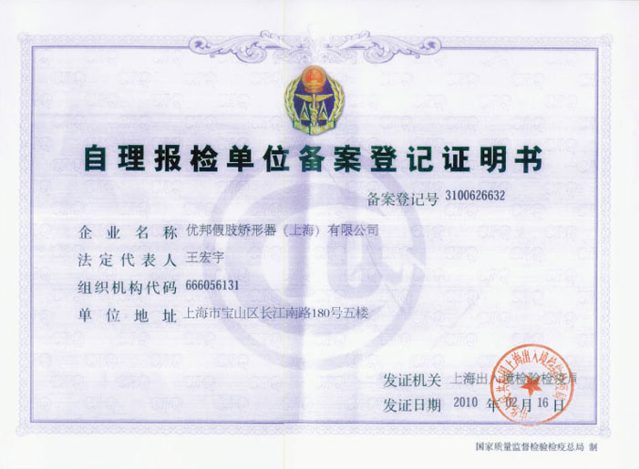 自理报检登记证明书